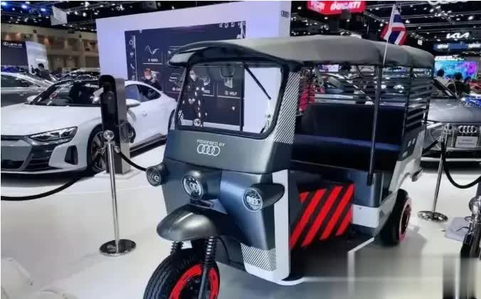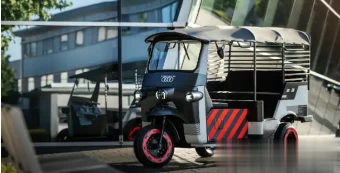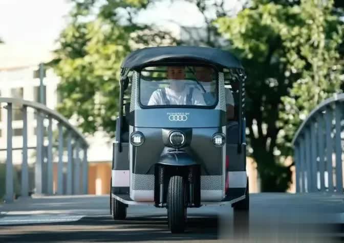 奥迪居然跑到印度去造电动三轮车了。没错,就是那个生产A8和R8的德国豪车品牌。这次可不是什么山寨货,车头上清清楚楚挂着四个圈的标志,阳光下闪闪发光,看起来还挺酷。